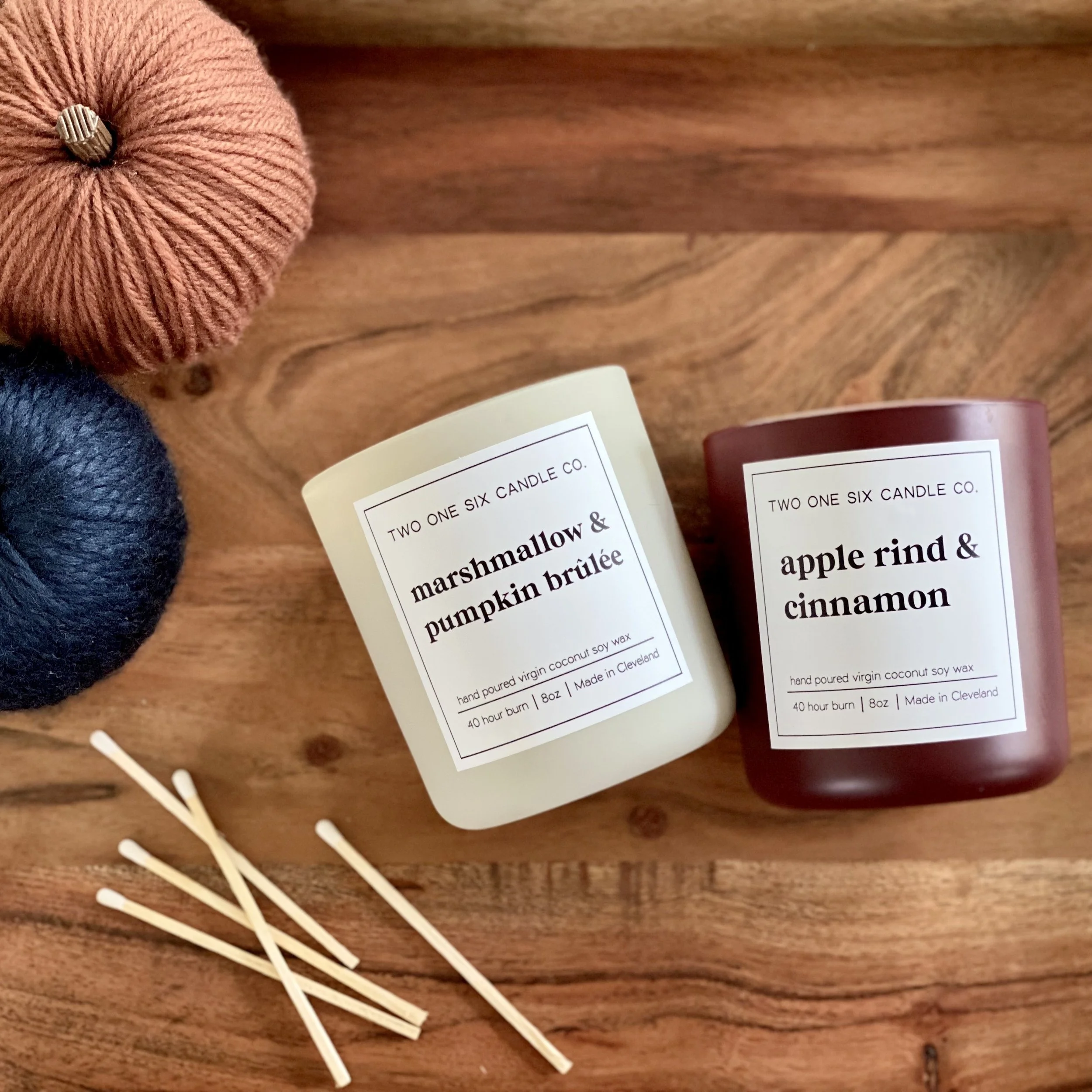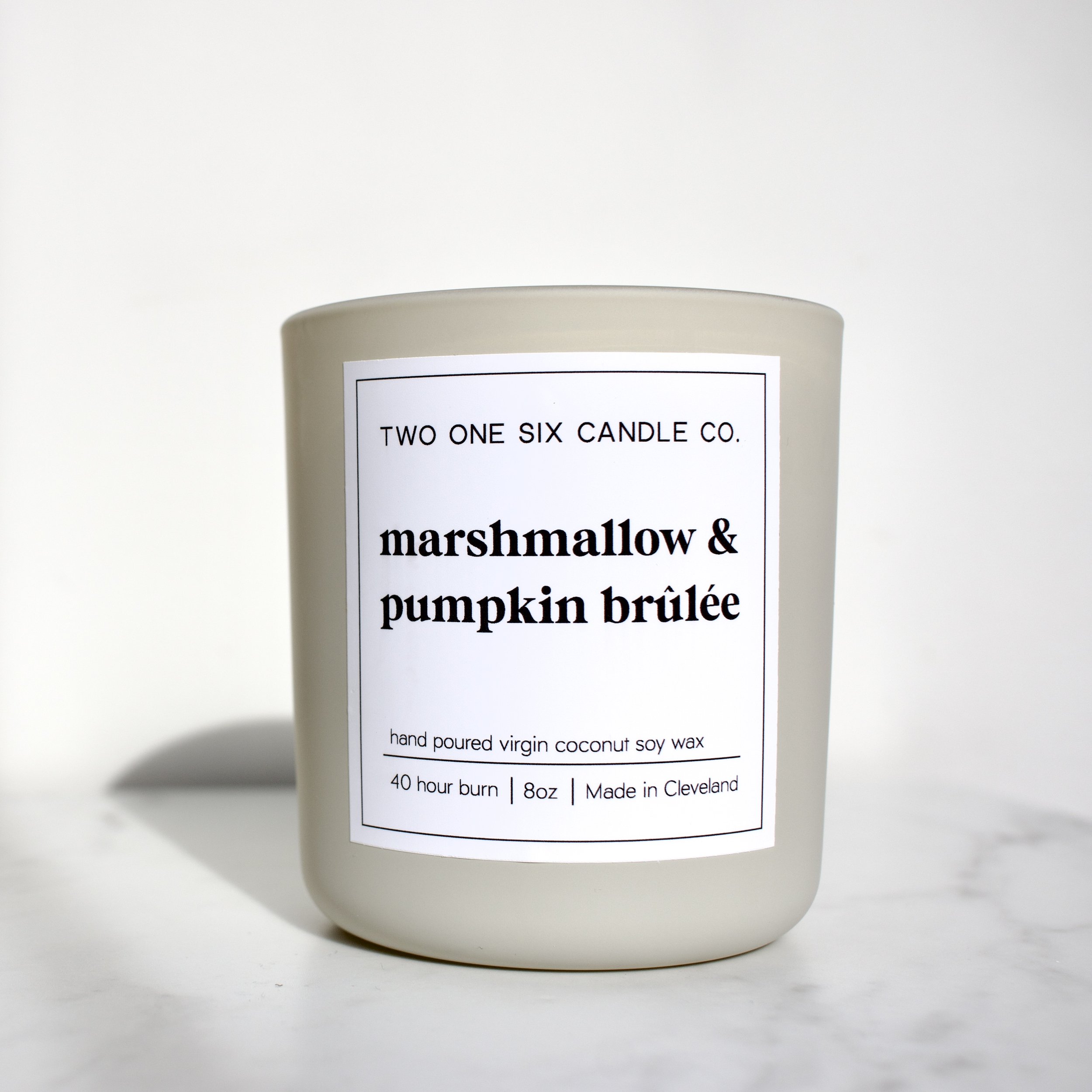 This candle crafts a deliciously decadent olfactory experience that transports you to a cozy autumn evening. The warm, inviting scents of toasted marshmallow, perfectly paired with the rich and creamy essence of pumpkin brûlée harmonize beautifully, evoking memories of bonfires and festive gatherings. Let this blend of comfort and indulgence envelop your space, creating the perfect atmosphere for relaxation and enjoyment.
